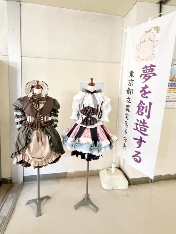 都立農業高校には農業科(都市園芸、緑地計画、食品化学)と家庭科(服飾、食物)に分かれた5つの学科があります。「なぜ農業高校に家庭科があるのか?」と思うかもしれませんが、それには農業高校の歴史が関係しています。府中ではかつて絹を作るための繭と桑の生産が盛んでした。その生産を学ぶために、農業高校の前身である養蚕高校が設立され、繭と桑を作る農業科、絹を作り、加工する家庭科が誕生しました。一見、関係がなさそうに見える農業科と家庭科は切っても切れない関係なのです。